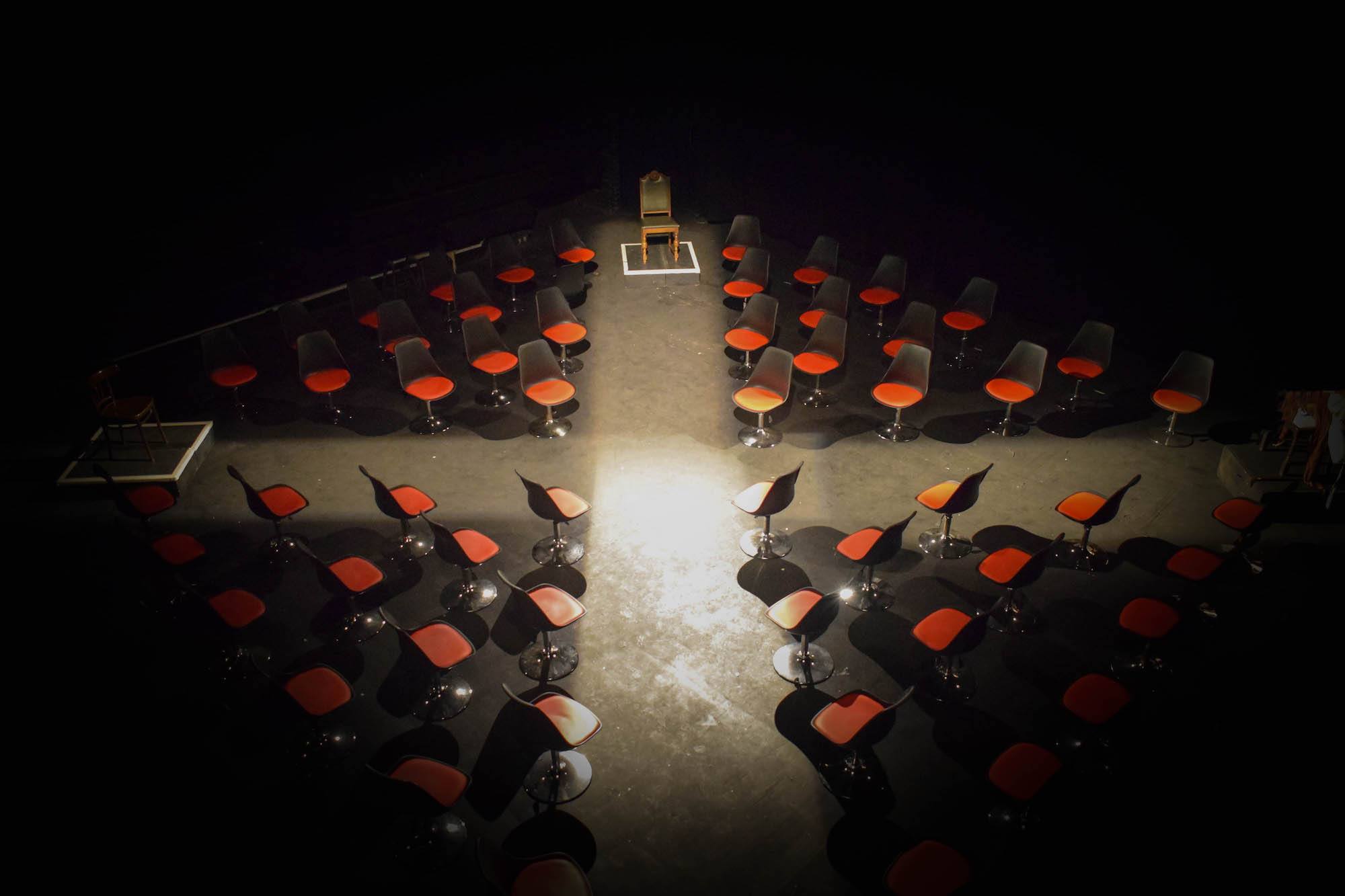 Well firstly, our show inverts the concept of theatre-in-the-round, placing the audience right in the centre of the action on swivel chairs allowing for a 360 degree perspective. You can spin and follow which parts of the narrative or which characters intrigue you the most as the actors perform on all four sides around you.